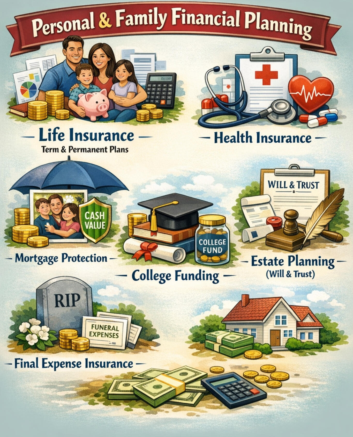 For Individual's and Family's we offer personalized financial and insurance solutions to help protect you and your family. Our services include financial planning, life and health insurance, mortgage protection, college funding strategies, estate planning support, and final expense insurance—designed to provide security and peace of mind at every stage of life.