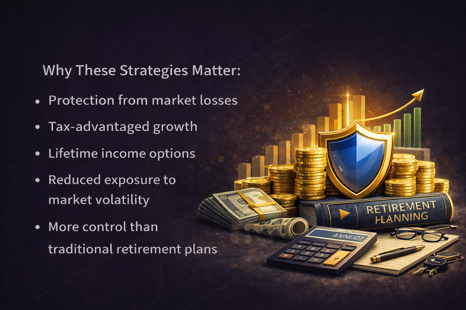 This includes annuities, Indexed Universal Life (IUL), and retirement income planning tailored to your long-term goals.